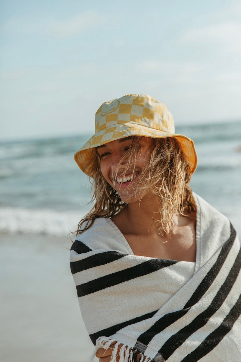 Seaesta Surf kids bucket hats are earth and performance conscious, featuring eco-friendly fabrics and a full brim to keep your kiddos covered while they play.